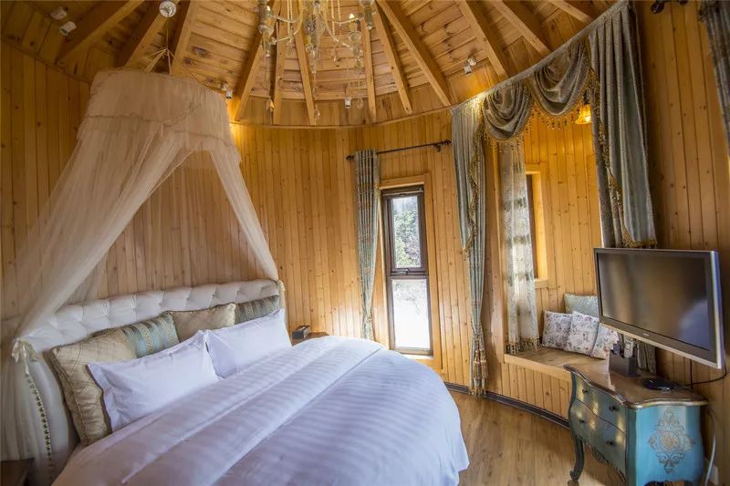 或者是木制屋顶上童话感十足的豪华床缦